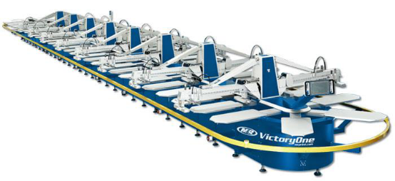 VictoryOne®是M&R公司和汉弘集团旗下诚拓印花(CNTOP)联合设计,制造,销售服务的第一款产品。VictoryOne®拥有6种配置,从22工位/6色到64工位/24色, 最小台板支持打印最大的图像尺寸:42 x 70 cm (16.5” x 27.5”), 最大台板上支持打印的最小图:55 x 70 cm (21.5” x 27.5”)。这款印刷机拥有伺服驱动装置和伺服驱动喷头,确保其流畅性,一致性,寿命长等特点。 同时,专门为VictoryOne®椭圆印刷机设计了独立 Sechuan®石英移动烤箱。VictoryOne®自动椭圆印刷机将通过M&R公司在全球的销售渠道和服务网络进行销售和提供服务支持。